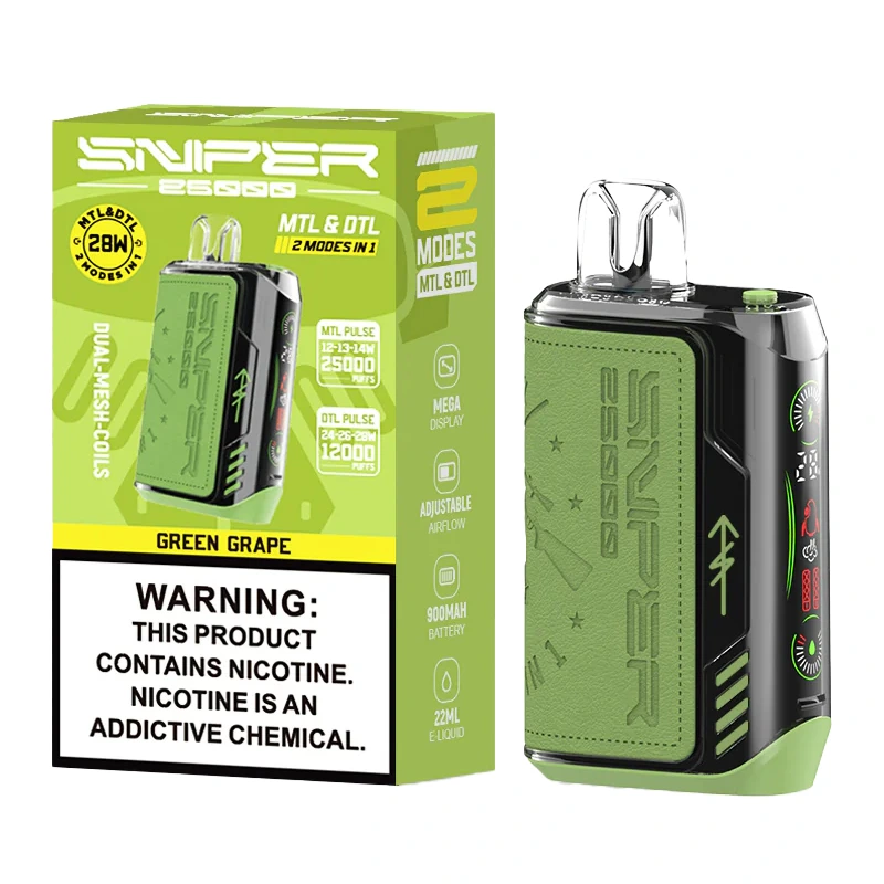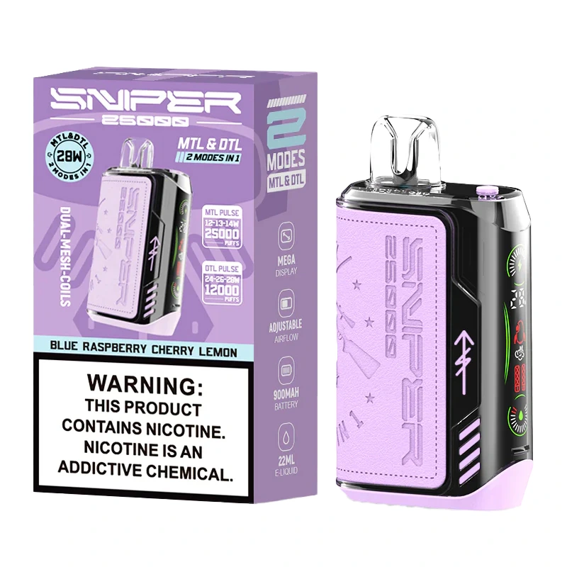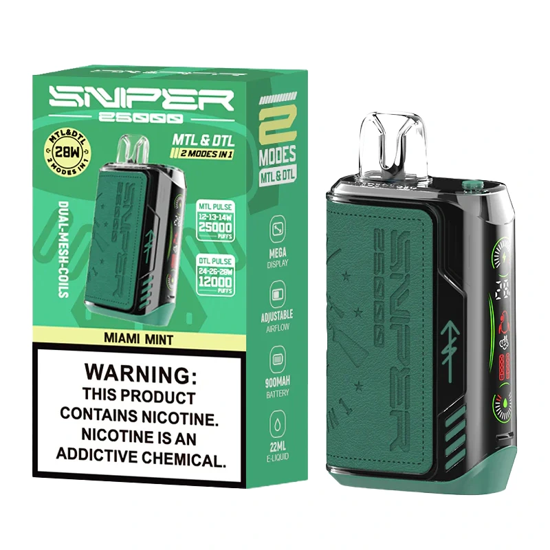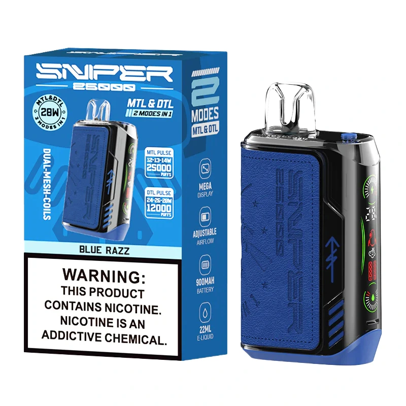 Breek de regels met de VAPMOD SNIPER 25000 Wegwerpvape voor 25K trekjes! Instelbare luchtstroom, 12 gedurfde smaken, aanpasbare nicotineniveaus en hightech mesh coil-technologie zorgen voor smaak en voldoening. Handig, slank, draagbaar en ideaal voor op reis.