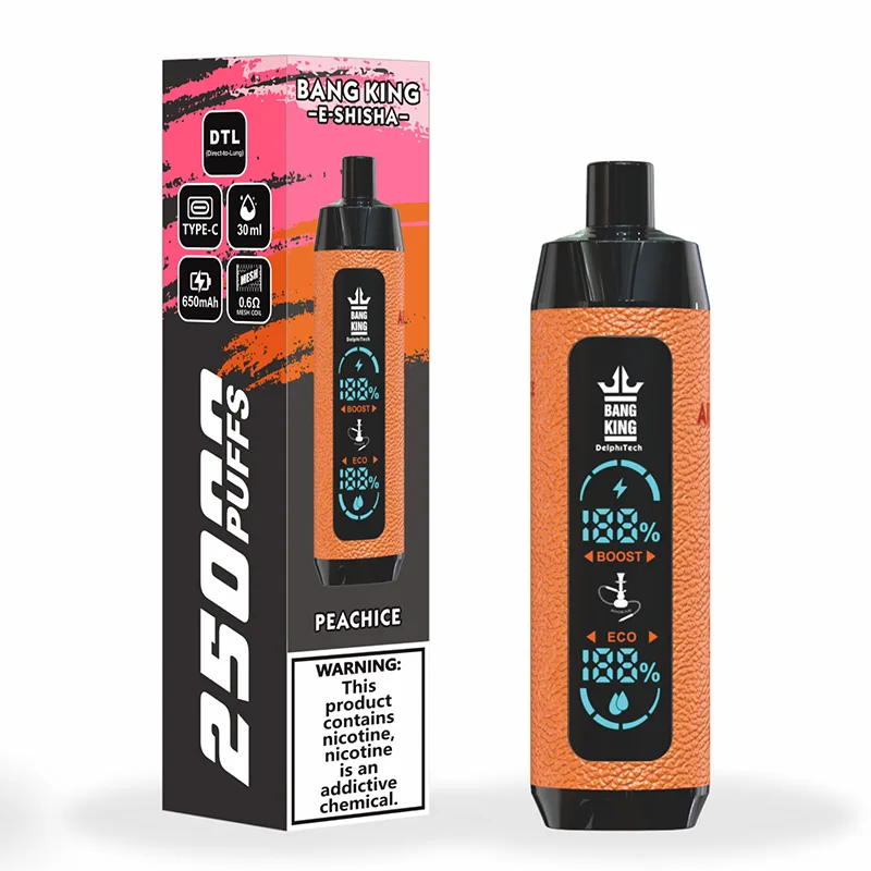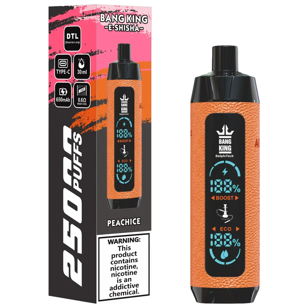 Den Bang King E Shisha 25000 Disposable Vape är din bärbara vattenpipsdröm - 25 000 episka bloss, 12 djärva smaker och en 0,6Ω mesh-spole för täta moln och mjuka träffar. Kompakt, uppladdningsbar och förfylld, det är problemfri vaping när den är som bäst! Bara packa upp, inhalera och viba.